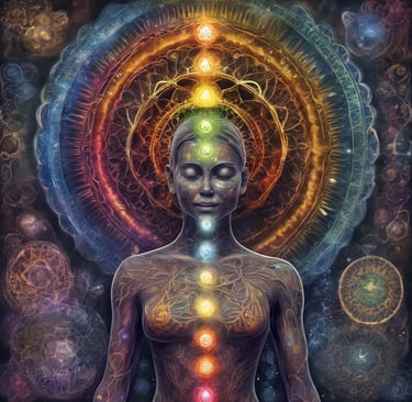 The space between the physical and the non-physical. Its color is white light or violet, the chanting of the mantra AUM SRI activates this area, in the relationship to activate the rest of the energies in an attempt to balance for full experience.